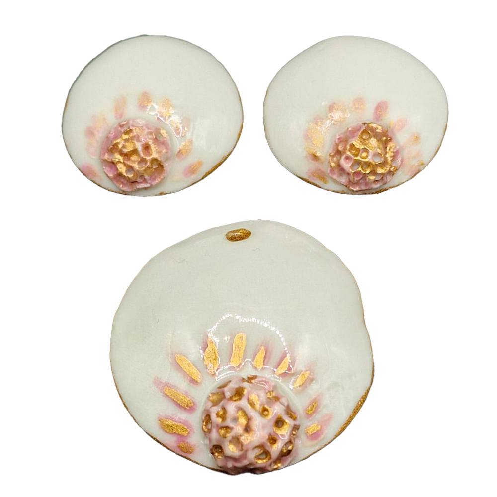– set unicat lucrat manual ,din porțelan ars în cuptor de două ori la 950 grade respectiv 1250;